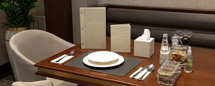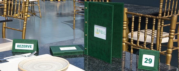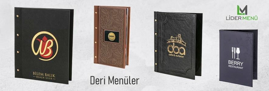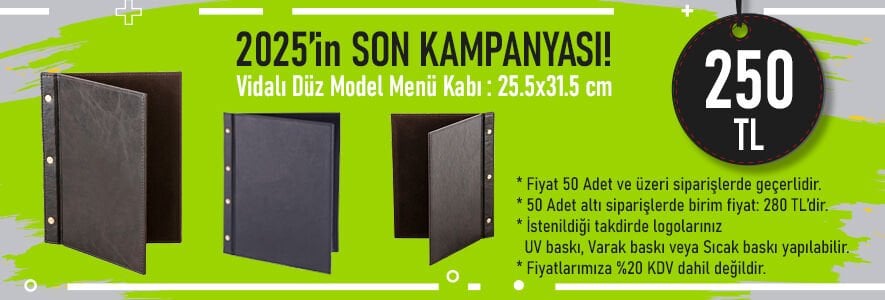 Vidalı Düz Model Deri Menü Kabı Sıcak Baskılı